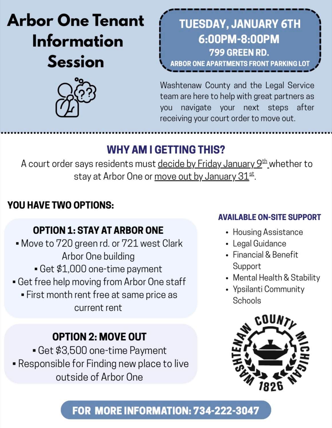 Washtenaw County and the Legal Service team are here to help with great partners as you navigate your next steps after receiving your court order to move out.
